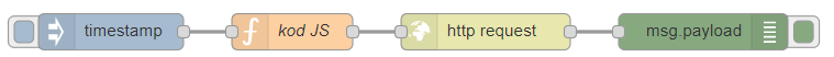 W środowisku Node-RED do wykonania zadania można wykorzystać bloczki