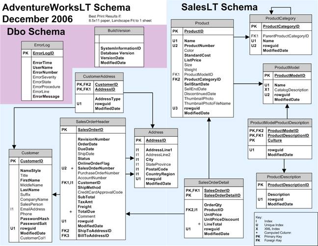 Baza danych AdventureWorksLT jest przykładową bazą danych OpenSource przeznaczoną do nauki programowania, udostępnioną na stronie http://www.codeplex.com/SqlServerSamples, w ramach wspieranego przez Microsoft projektu CodePlex. Diagram bazy danych AdventureWorksLT przedstawiony jest na rysunku 1.